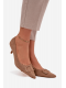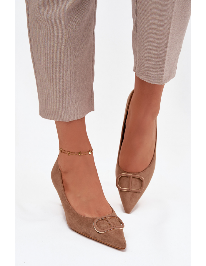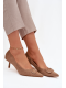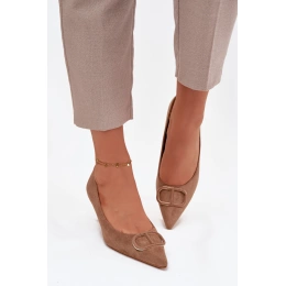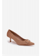 Elegantní tmavě béžové dámské lodičky Amelora s jemným dekorativním detailem na špičce kombinují styl a komfort. Špičatá konstrukce opticky prodlužuje nohy a stabilní podpatek zajišťuje pohodlnou chůzi při slavnostních i každodenních příležitostech.