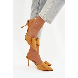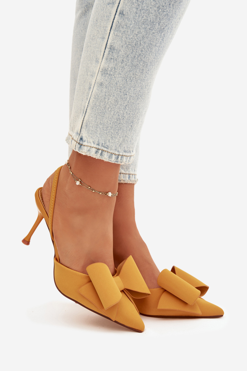 Dámské lodičky Eklevia ve výrazném žlutém provedení zaujmou elegantním designem s otevřenou patou a jemnou mašlí na špičce. Štíhlý jehlový podpatek dodává obuvi ženský vzhled a opticky prodlužuje siluetu nohou. Svěží barva působí hravě a stylově, díky čemuž jsou lodičky ideální volbou pro ženy, které chtějí svému outfitu dodat originální a elegantní akcent.