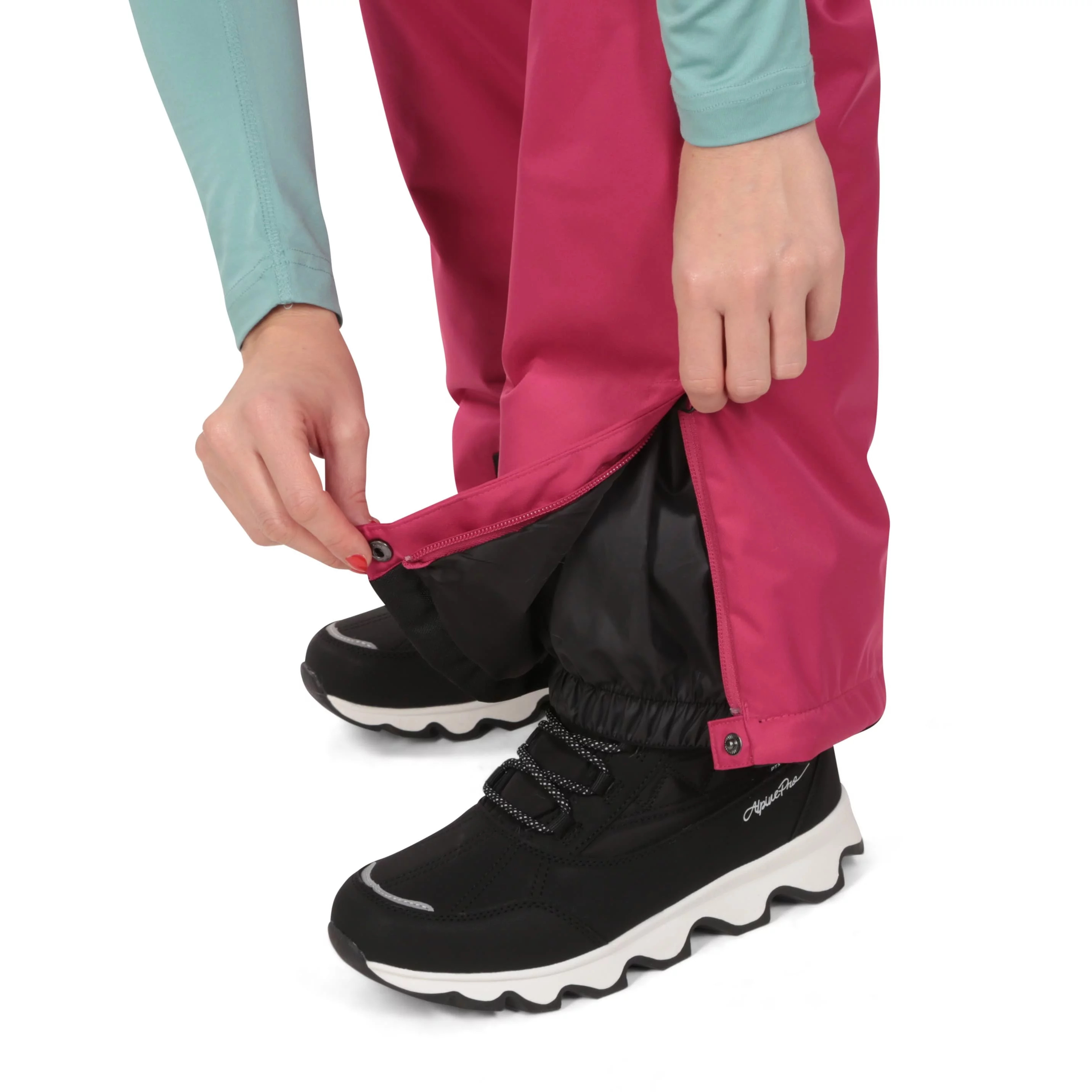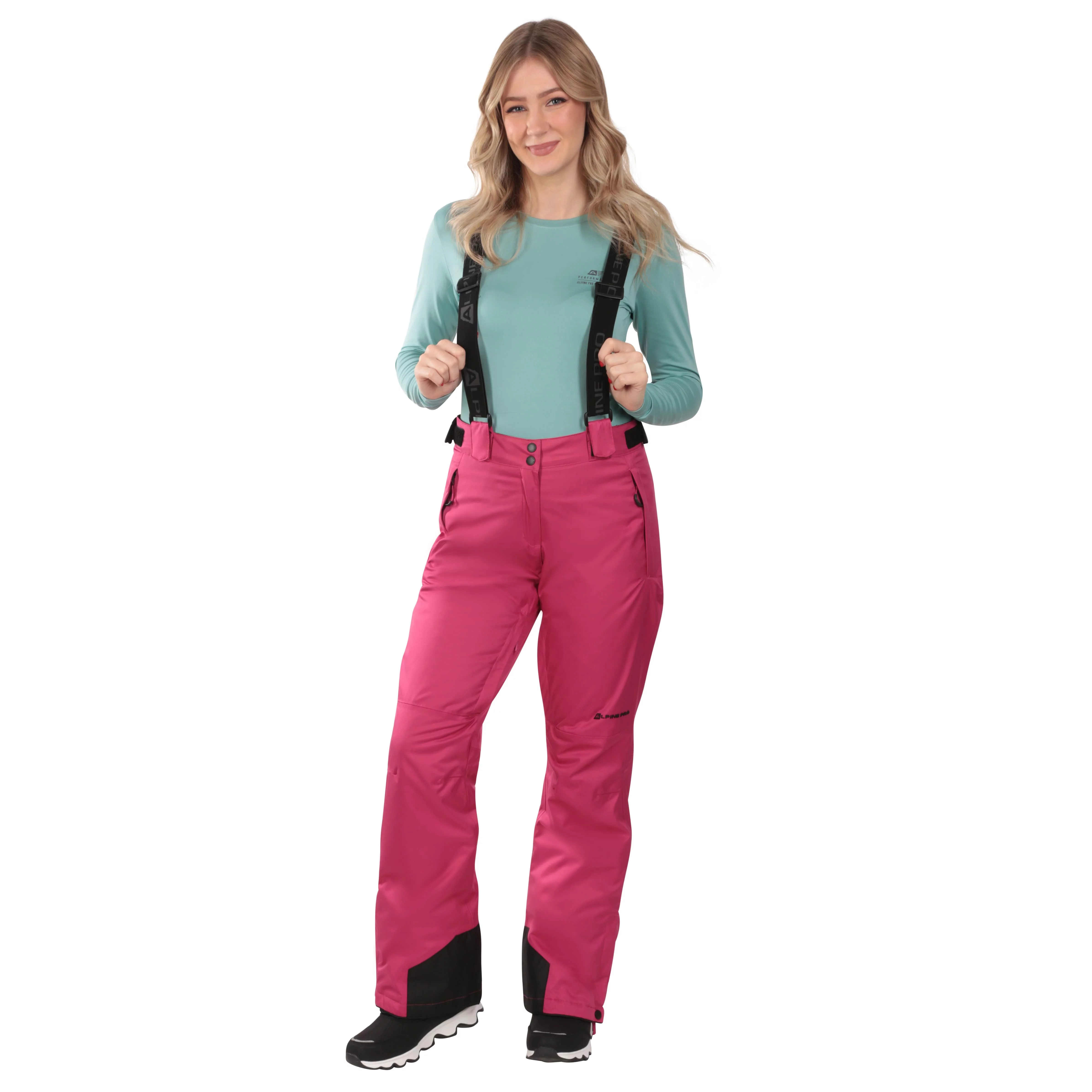 Dámské lyžařské kalhoty ALPINE PRO EDESA v zářivém odstínu vivacious (výrazná růžovo-fuchsiová barva) jsou skvělou volbou pro ženy, které chtějí být na svahu nepřehlédnutelné, v pohodlí a suchu. Spojují moderní sportovní vzhled s technickými vlastnostmi, které oceníte při každém zimním dobrodružství.