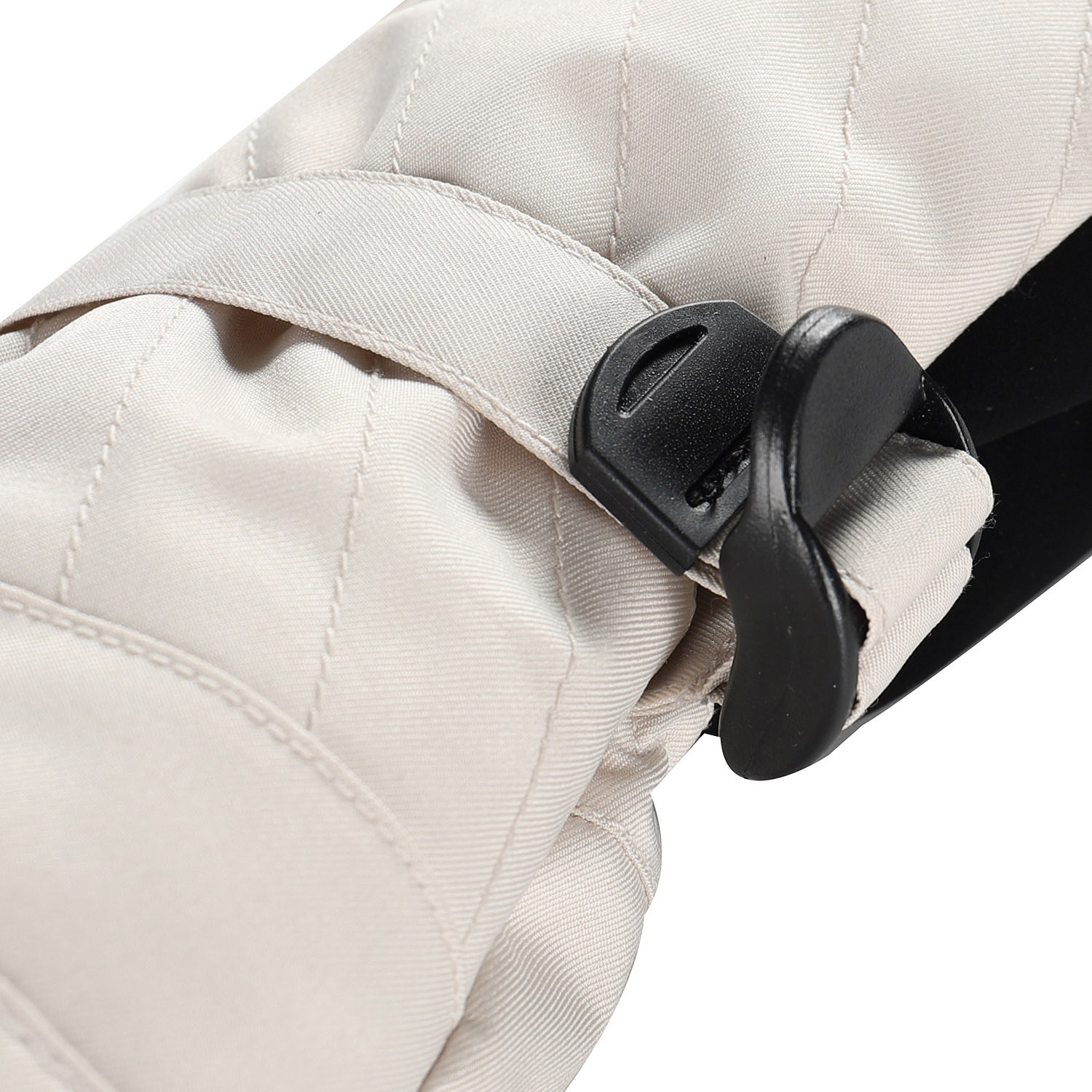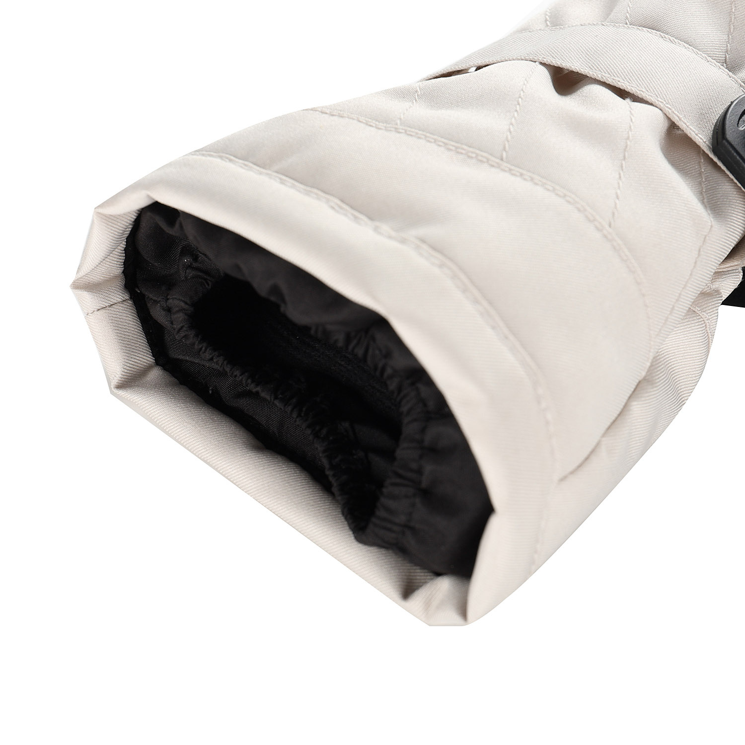 Rukavice mají pružnou manžetu a popruhové stahování v oblasti zápěstí, což umožňuje přesné přizpůsobení a zabraňuje pronikání studeného vzduchu. Oblast dlaně a prstů je zesílená speciálním materiálem, který zvyšuje odolnost rukavic a zajišťuje lepší uchopení lyžařských hůlek nebo snowboardu. Reflexní potisky na rukavicích zvyšují viditelnost a bezpečnost při snížené viditelnosti.