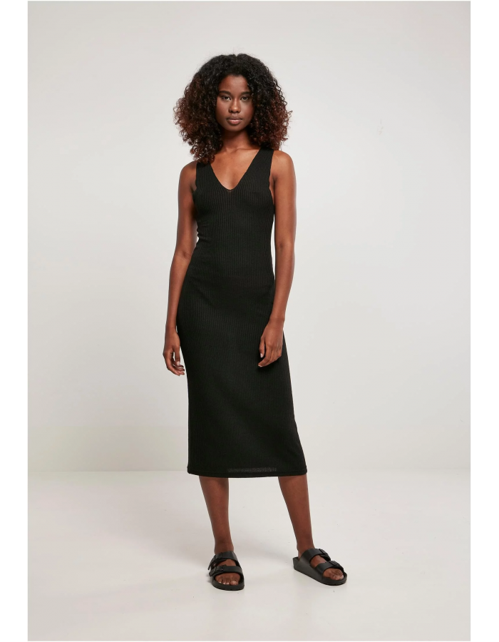 Roztrhané šaty sází na klasické linie, které jsou nově interpretovány se vzrušující zadní částí. Ramínka se vedou křížem s uzlem a tvoří vzadu výstřih ve tvaru slzy. Vpředu definuje výstřih do V, který je kompletní. Šaty dosahují midi délky nad kolena a jsou střiženy příjemně volně, s pružným materiálem ve směsi polyesteru, viskózy a elastanu.
