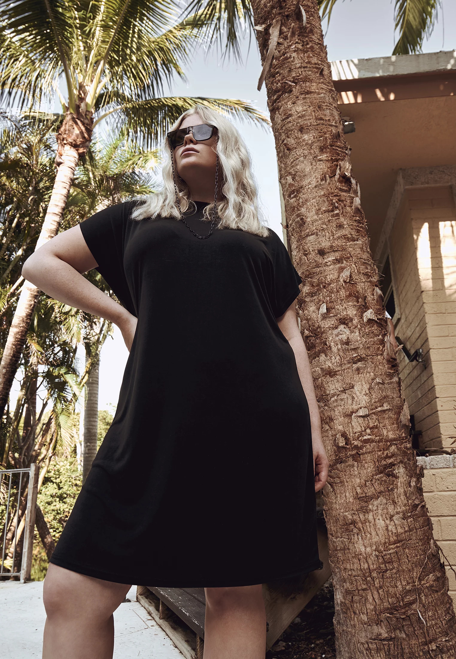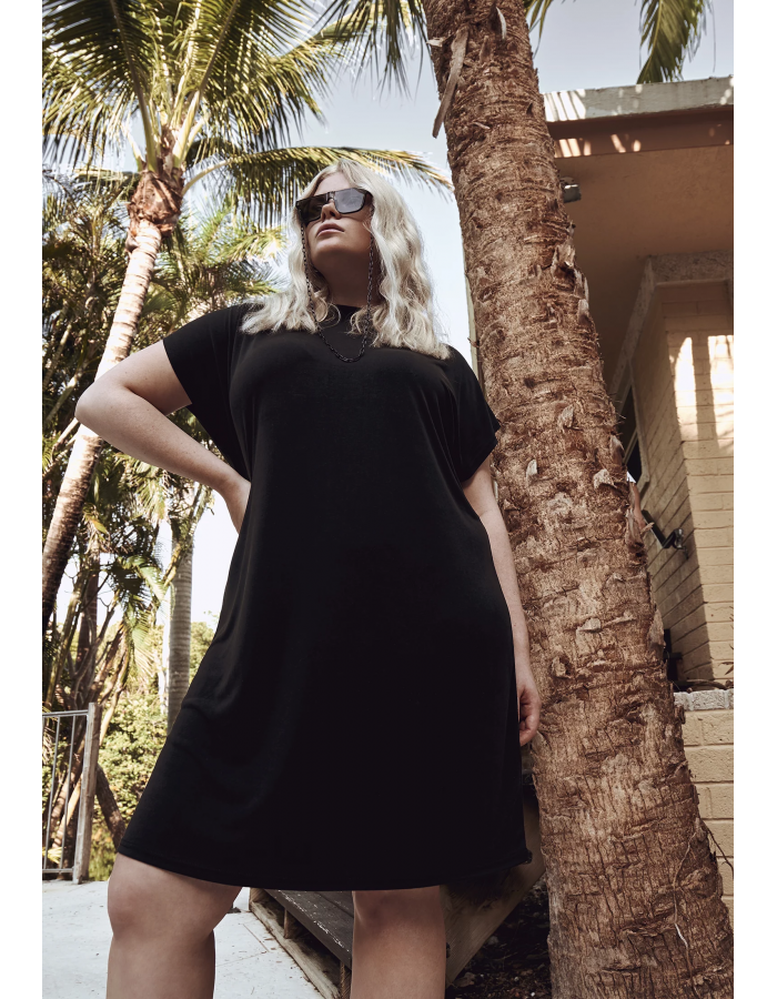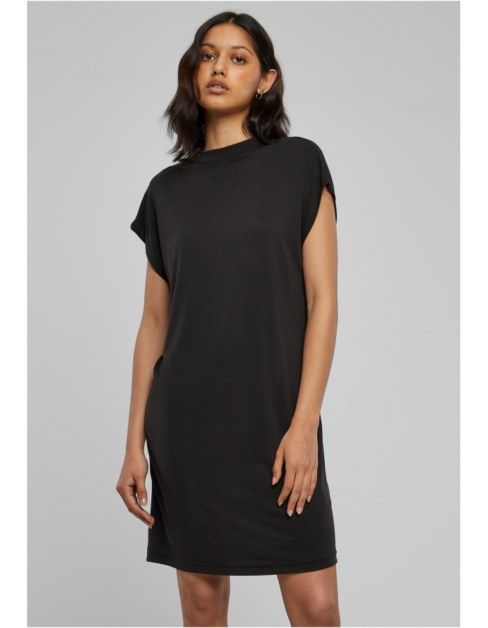 Slunečné dny, vlahé večery: modalové šaty jsou pro letošní léto nutností a z nejcennějšího období roku vytěží víc. Měkká látka se snoubí se sofistikovaným střihem: její minimální stojáček a šikmé zkrácené rukávy zdůrazňují vaši ženskost. Šaty přiléhají těsně k postavě a končí nad koleny: tak ukážete správné množství nohou.
