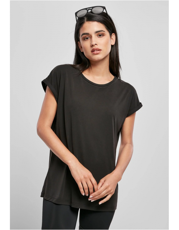 Dámské modální tričko s prodlouženým ramenem černé