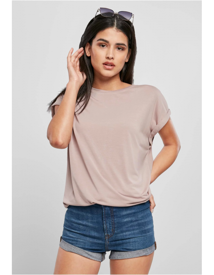 Toto dámské tričko je skutečným nepostradatelným prvkem Urban Classics a snadno se kombinuje s různými styly. Střih je dlouhý. Výstřih je kulatý a doplněný šikmými rukávy a zvýrazněnými manžetami. Volný střih podtrhuje příjemný design. Dámské tričko je vyrobeno z pohodlného a spolehlivého modalového žerzeje.