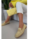 Dámské mokasíny Evelora v zářivém žlutém provedení přinášejí svěží akcent do každodenního outfitu. Klasický střih loafers je doplněn dekorativním prvkem na nártu, který dodává obuvi elegantní a moderní vzhled. Nízký podpatek a pohodlná podešev zajišťují komfort při celodenním nošení, zatímco výrazná barva podtrhne osobitý styl. Hlavní benefity: Klasický střih mokasín (loafers) pro univerzální využití Ozdobný prvek jako stylový detail Výrazná žlutá barva oživí každý outfit Pohodlná konstrukce vhodná pro celodenní nošení Snadné nazouvání bez zapínání Využití:Ideální na běžné denní nošení, do města, do práce, na schůzky i volný čas během jarní a letní sezóny. Tip:Žluté mokasíny krásně vyniknou v kombinaci s neutrálními barvami, jako je bílá, béžová nebo denim, a dodají outfitu svěží a moderní nádech. Složení materiálu: Svršek: syntetický materiál Vnitřní část: syntetický/textilní materiál Podešev: syntetický materiál Velikosti EU/cm: