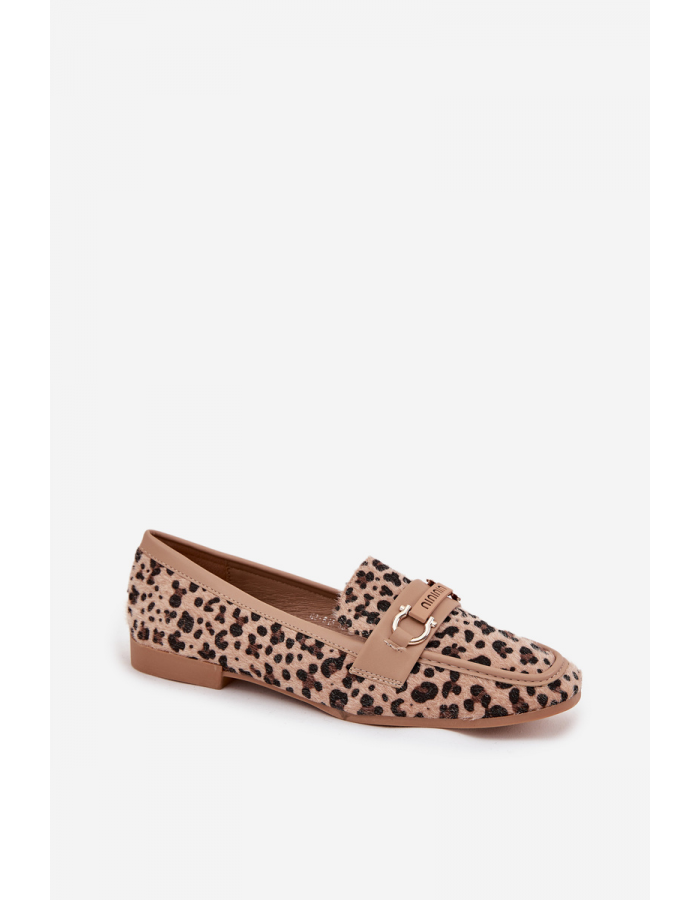 Stylové dámské mokasíny Evelora v béžovém provedení s panterkovým vzorem kombinují pohodlí, eleganci a módní detail. Ideální volba pro ženy, které chtějí elegantní boty s jemným vzorováním do práce i na volný čas.