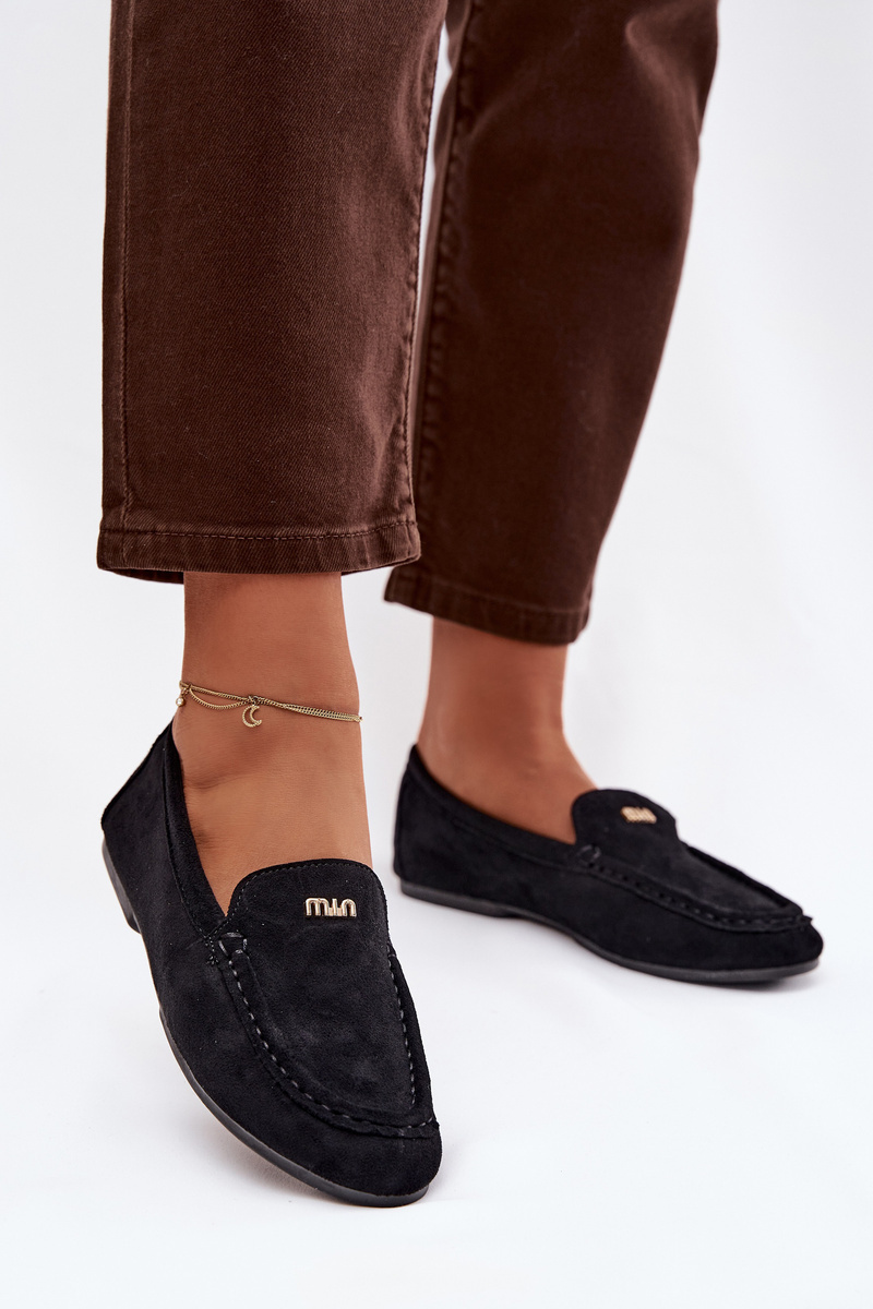 Černé mokasíny se zlatým detailem skvěle fungují s neutrálními outfity — zkombinujte je s béžovými kalhotami, jednoduchou halenkou nebo společenskými šaty pro elegantní a moderní look.