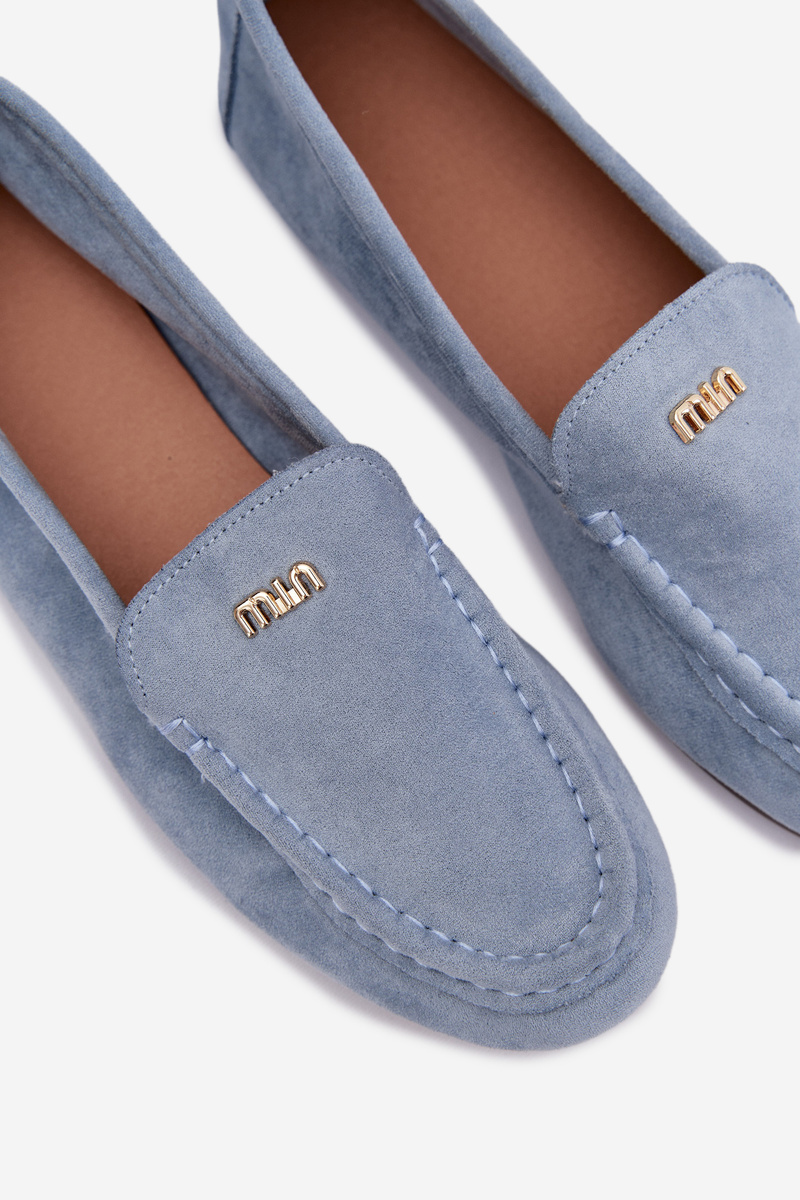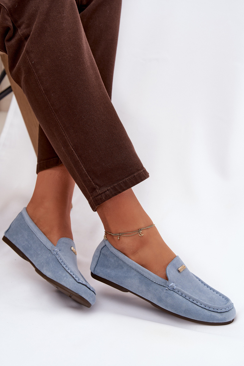 Modré mokasíny se zlatým detailem krásně ladí s neutrálními barvami – zkombinujte je s béžovými, bílými nebo šedými outfity pro vyvážený a stylový vzhled.