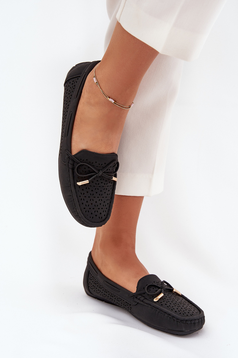 Stylové černé mokasíny Mirisa kombinují moderní perforovaný design se šněrováním pro perfektní přizpůsobení noze. Plochá podrážka a měkký materiál zajišťují komfort po celý den, zatímco prodyšný vzor dodává botám elegantní a svěží vzhled. Ideální volba pro ženy, které hledají pohodlné a stylové boty pro každodenní nošení.