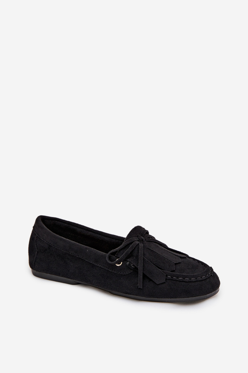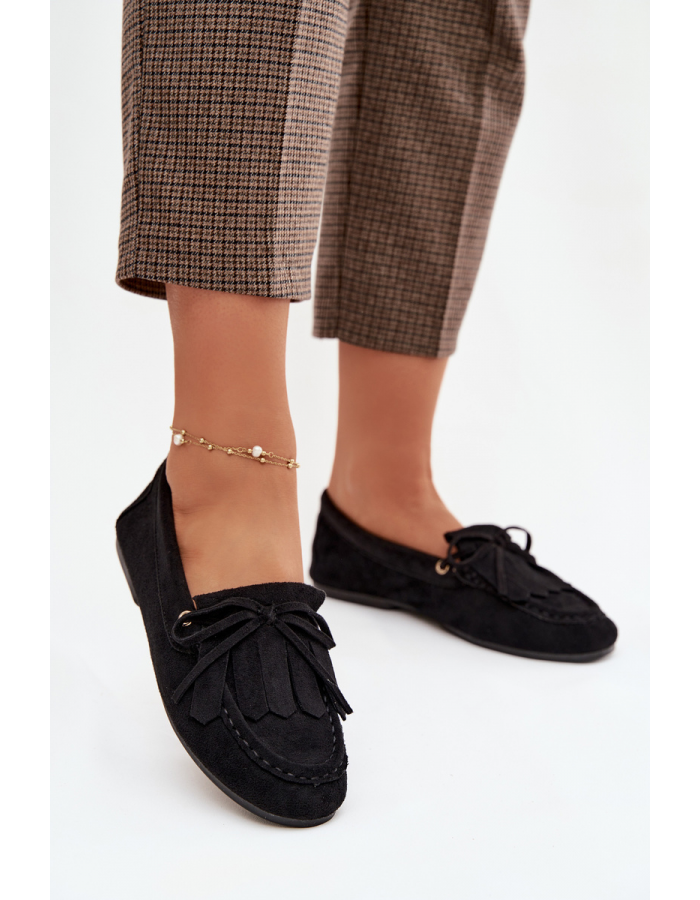 Dámské mokasíny Glorina v černém provedení kombinují klasický střih s výraznými detaily v podobě šněrování a dekorativních třásní. Nadčasová černá barva dodává obuvi elegantní charakter a umožňuje snadné kombinování s každodenními i formálnějšími outfity. Pohodlný tvar zajišťuje komfort při nošení po celý den.