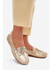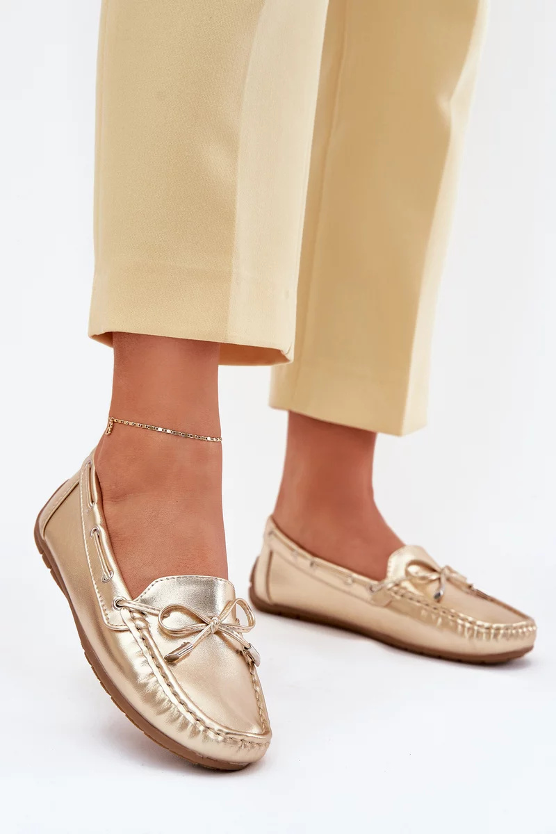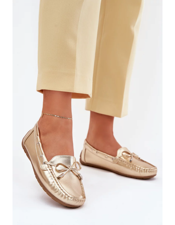 Stylové zlaté mokasíny Si Passione z eko kůže kombinují nadčasový design s pohodlím po celý den. Plochá podrážka a měkký materiál zajišťují komfortní nošení, zatímco jemný lesklý efekt dodává botám elegantní a sofistikovaný vzhled. Ideální volba pro každodenní nošení i slavnostní příležitosti.