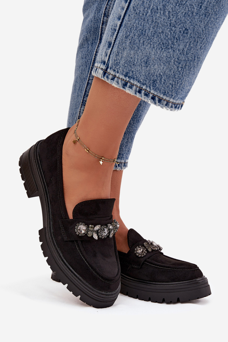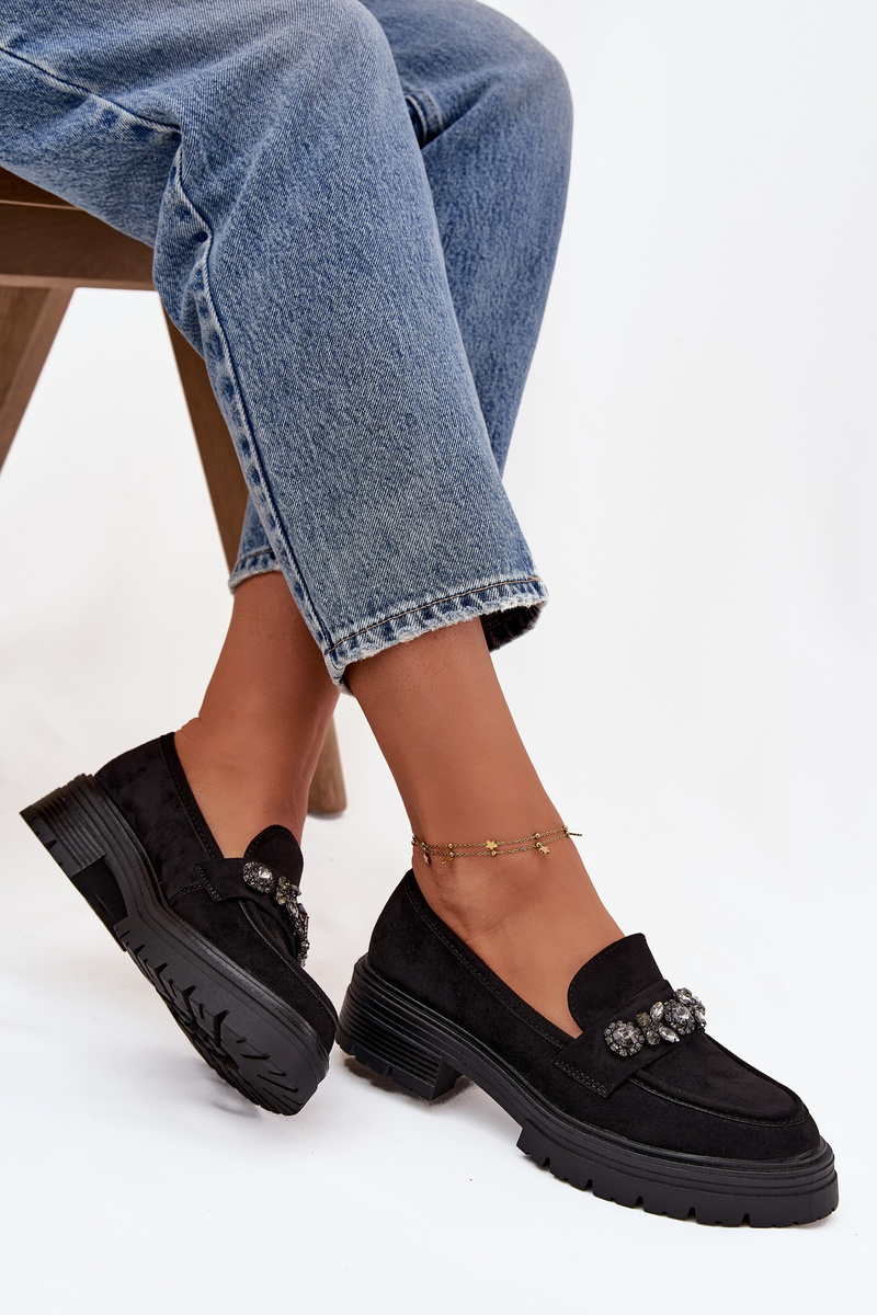 Elegantní dámské mokasíny Lavisse z eko semiše v černém provedení zaujmou jemnými krystalky, které dodávají obuvi luxusní a stylový vzhled. Měkký, příjemný materiál poskytuje pohodlí po celý den, zatímco klasický střih loafersů zajišťuje nadčasový design. Tento model je ideální pro ženy, které chtějí spojit komfort s výrazným módním akcentem.