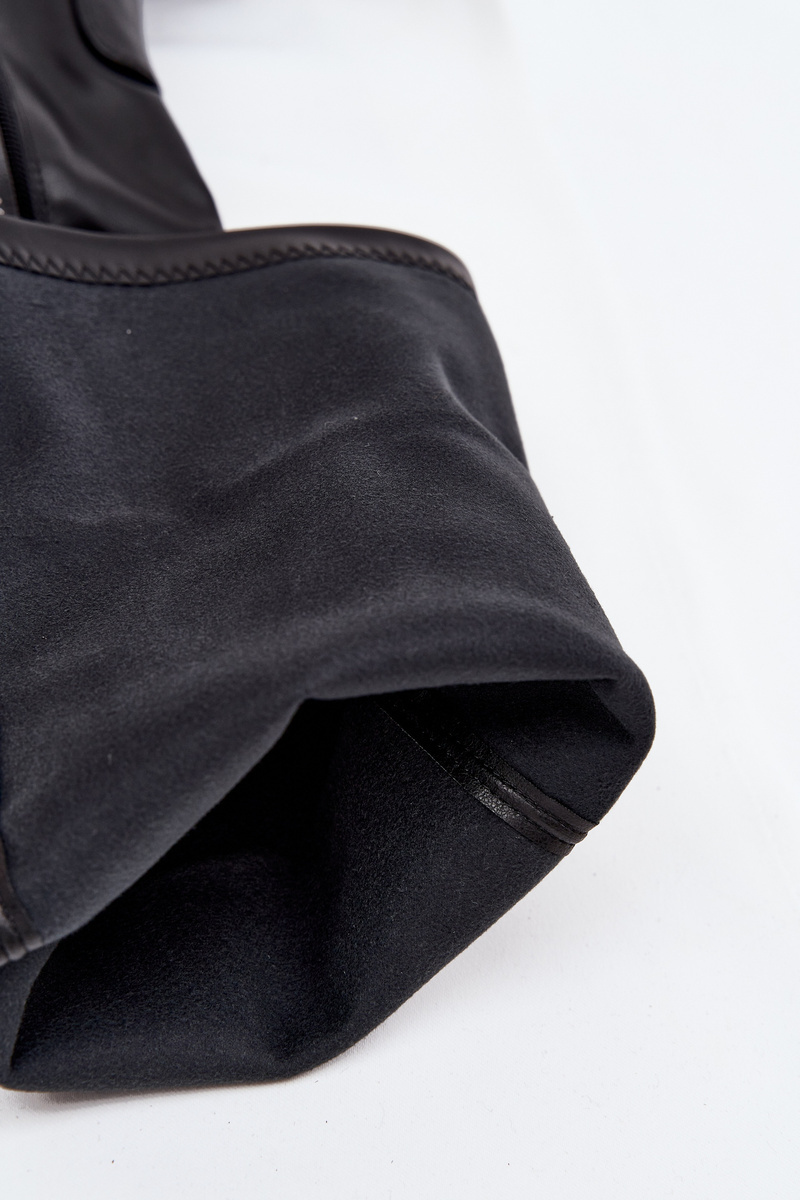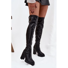 Černé nadkolenní kozačky Tahlina z eko‑kůže s pohodlným sloupkovým podpatkem (~ 7 cm). Mají boční zip pro snadné nazouvání a elegantní univerzální design vhodný pro každodenní nošení i formální outfity. Vnitřní měkké zateplení poskytuje komfort a teplo během chladných dní.