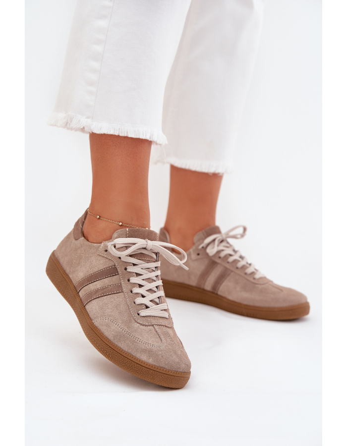 Dámské nízké sneakersy Zazoo v tmavě béžovém provedení představují elegantní a nadčasovou volbu pro každodenní nošení. Semišový svršek z přírodní kůže dodává obuvi jemnou strukturu a prémiový vzhled, zatímco nízký střih zajišťuje přirozený pohyb a pohodlí. Díky neutrální barvě se sneakersy snadno kombinují s různými outfity.
