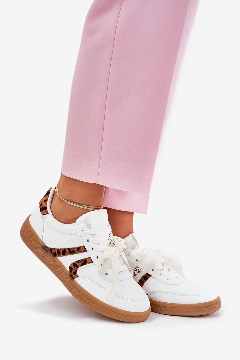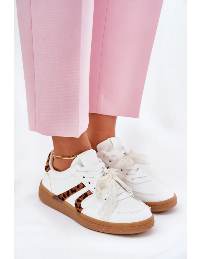 Dámské nízké sneakersy Zielle v bílém provedení zaujmou originální kombinací jemné krajky a výrazného leopardího vzoru. Tento kontrast dodává obuvi ženský, ale zároveň moderní charakter. Nízký střih zajišťuje pohodlí a volnost pohybu, zatímco světlý základ umožňuje snadné kombinování s každodenními i výraznějšími outfity.