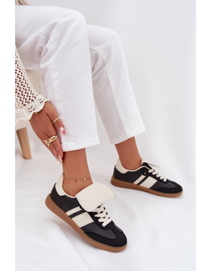 Černé nízké sneakersy kombinujte s džíny, kalhotami s kratší délkou nebo sukní – vyhrnutý jazyk vynikne zejména u jednoduchých outfitů.