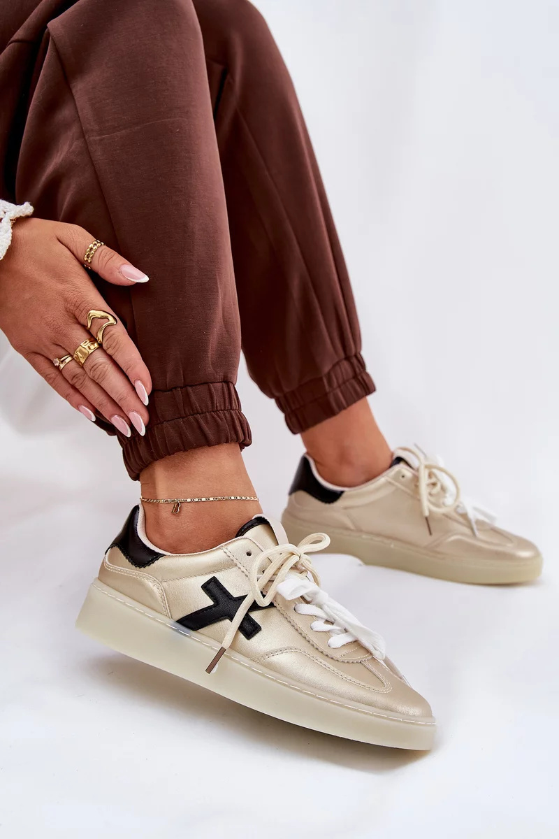 Zlaté tenisky krásně doplní neutrální outfity — zkombinujte je s džíny, légínami nebo letními šaty pro svěží a moderní look.