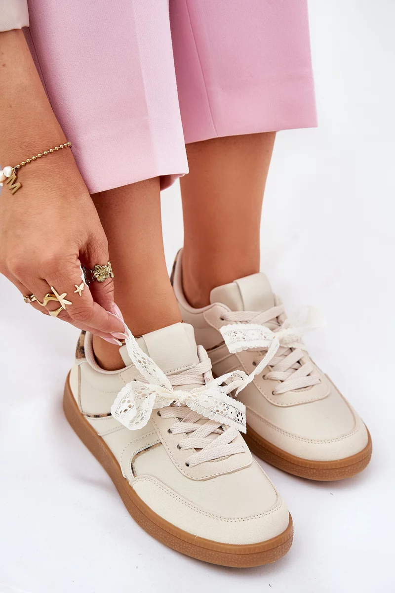 Dámské nízké tenisky Zielle v béžovém provedení zaujmou originální kombinací jemné krajky a trendy panterkového vzoru. Tento kontrast dodává obuvi ženský, ale zároveň moderní a výrazný charakter. Pohodlný nízký střih je ideální pro každodenní nošení, zatímco světlý béžový tón umožňuje snadné kombinování s městskými i volnočasovými outfity.