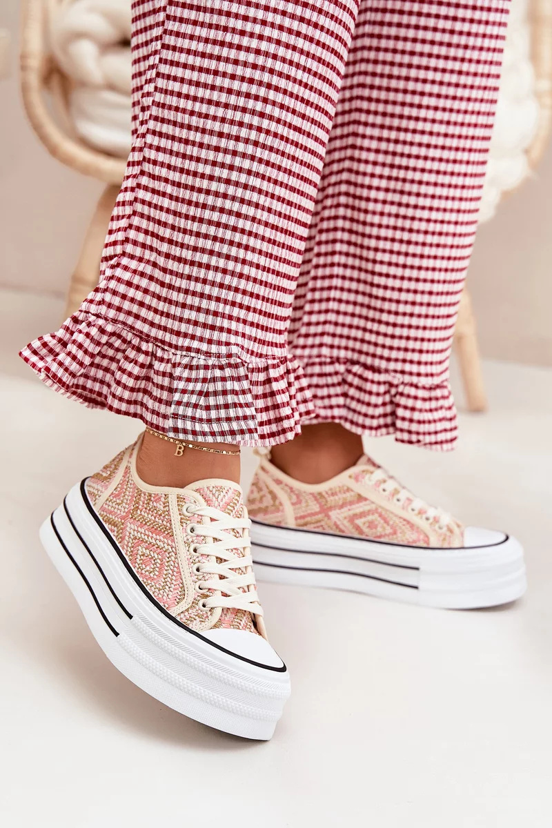 Dámské nízké trampky Melina na platformě v růžové barvě jsou pohodlnou volbou pro každodenní nošení, když chcete klasický trampkový styl v modernějším provedení. Nízký střih působí lehce a dobře se hodí k džínům, šortkám i šatům, takže boty využijete od jara do podzimu. Platforma dodá outfitu aktuální trendový vzhled a zároveň poskytne stabilní došlap při chůzi. Růžový odstín působí svěže a hravě, ale díky jednoduchému provedení se dá snadno kombinovat i s neutrálními barvami.