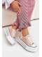 Textilní obuv čistěte jemně navlhčeným hadříkem nebo měkkým kartáčkem a nechte ji volně vyschnout při pokojové teplotě. Platformu po nošení otřete, aby zůstala čistá a boty vypadaly upraveně.