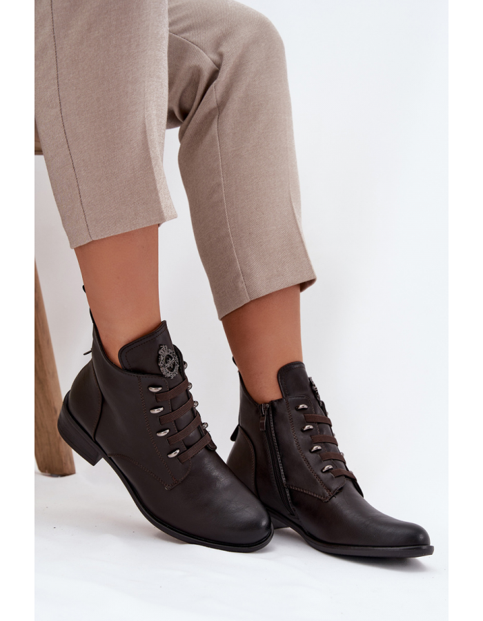 Stylové nízké kotníkové botky Nevalia v hnědém provedení kombinují pohodlí a elegantní vzhled. Botky jsou zateplené, což zajišťuje teplo a komfort během chladnějších dní. Praktický boční zip umožňuje snadné obouvání a svlékání, zatímco jemná ozdoba dodává modelu módní a ženský akcent. Nízký střih a stabilní podešev zajišťují pohodlnou a jistou chůzi.