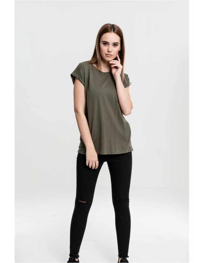 Dámské olivové tričko s prodlouženým ramenem