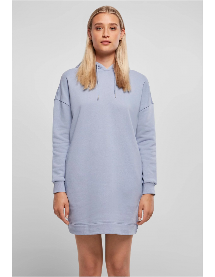 Tyto výjimečné minišaty jsou založeny na bokovém střihu s kapucí a vyzařují sexy chlad. Dámské šaty mají pravidelný střih a nabízejí dvě praktické boční kapsy, velkou kapuci s kovově zakončenými šňůrkami a pohodlné manžety na rukávech a spodním lemu. Byl důmyslně tvarován dělícími švy vzadu. Atraktivní mikiny s kapucí uspokojí i hladké froté z organické bavlny. Minišaty završuje organické označení a štítek s boční vlajkou.