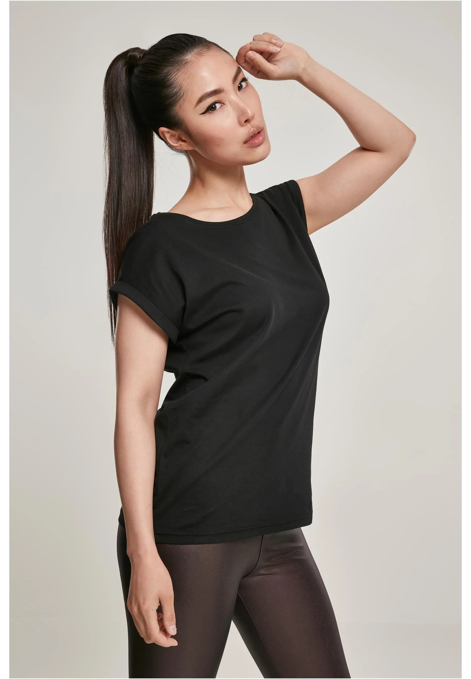 Dámské organické tričko s prodlouženým ramenem černé