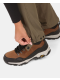 - Lemy nohavic lze přizpůsobit outdoorové botě pomocí stahování na kovové cvoky a háčku sloužícímu k přichycení o tkaničku boty.