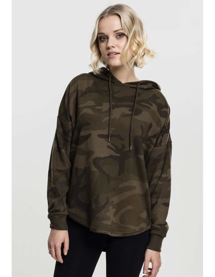 Dámská oversized Camo Hoody s oversized tvarem a jemným maskováním kombinuje dva nejoblíbenější městské styly. Měkká froté tkanina a přední a zadní zaoblený lem zajišťují volné a pohodlné nošení. Vsazené švy rukávů a široký žebrovaný lem doplňují ležérní vzhled a dělají z této mikiny nejnovější nezbytnost pro váš šatník.
