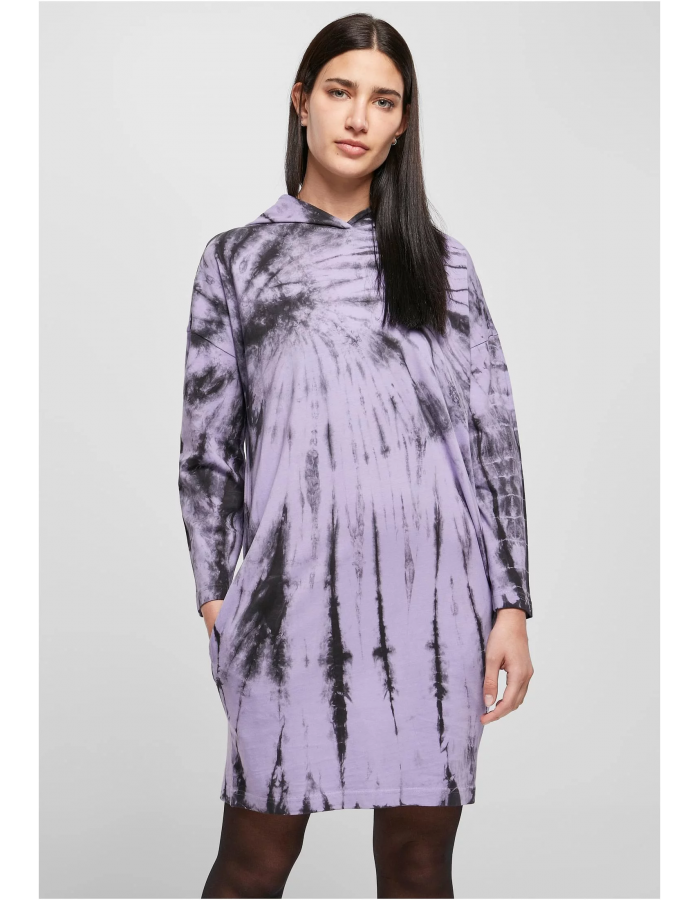Tyto nápadné dámské šaty jsou žhavou a ležérní reinterpretací mikiny s kapucí v podobě sportovních šatů. Má dlouhé rukávy, kapuci a boční kapsy. Střih je sexy oversize mini délky. Vrcholem stylu je konzistentní celoplošný vzhled kravaty. Šaty jsou ušity z poddajné single jersey bavlny.