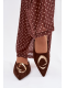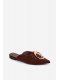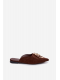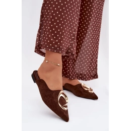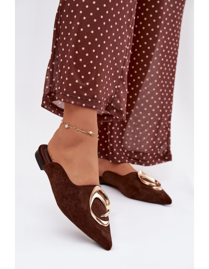 Čokoládové mule pantofle s zlatým detailem krásně doplní neutrální outfity — zkombinujte je s béžovými, bílými nebo krémovými kousky pro elegantní letní look.