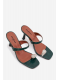 Lahvově zelené pantofle na jehlovém podpatku krásně doplní šaty v neutrálních tónech, jako je černá, krémová nebo zlatá, a dodají outfitu originální akcent.