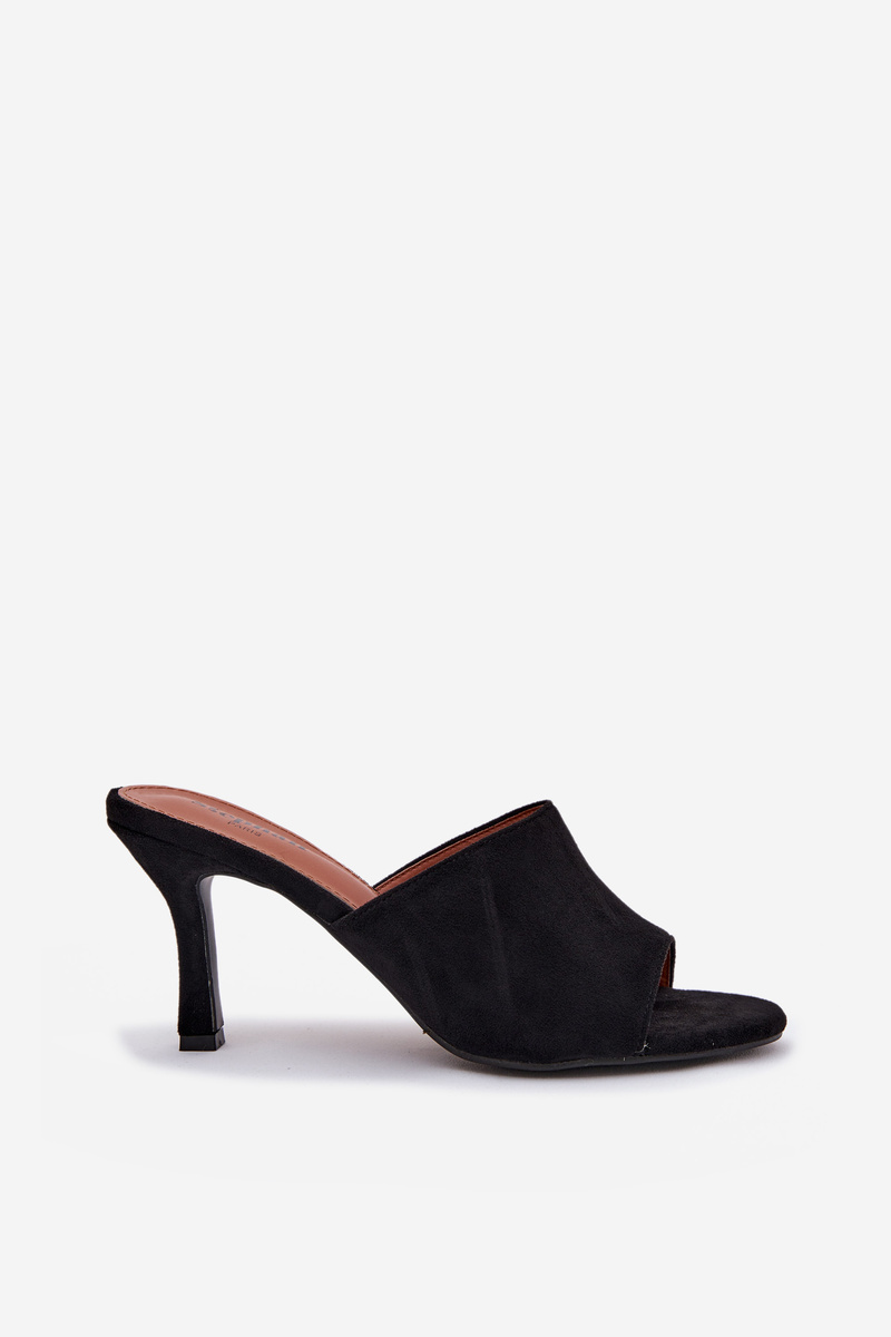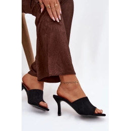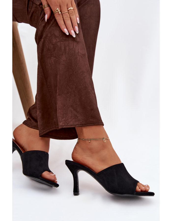 Dámské pantofle Isolia v černém provedení z eko semiše představují elegantní a smyslnou volbu pro slavnostní i večerní outfity. Jehlový podpatek dodává obuvi ženský charakter a opticky prodlužuje siluetu, zatímco jemný semišový povrch působí luxusně a sofistikovaně. Nadčasová černá barva zaručuje univerzální využití.