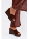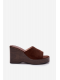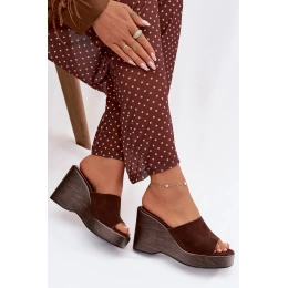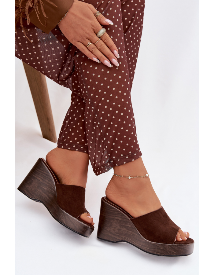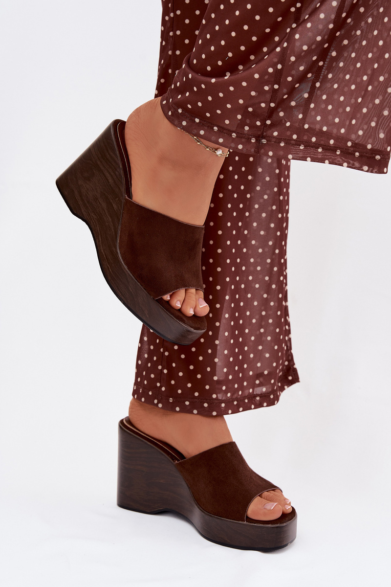 Čokoládové pantofle na klínku krásně doplní outfit v béžových, krémových nebo bílých tónech a podtrhnou elegantní letní styl.