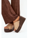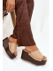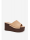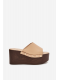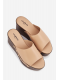 Béžové pantofle na klínku s cvočky krásně doplní outfit v přírodních tónech, lněné šaty, sukně nebo lehké kalhoty.