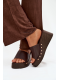 Dámské pantofle Arionne v čokoládovém provedení na klínku zaujmou elegantním designem doplněným o zlaté cvočky, které dodávají obuvi výrazný a moderní charakter. Klínový podpatek poskytuje stabilní a pohodlný došlap, zatímco tmavě hnědý, čokoládový odstín působí nadčasově a snadno se kombinuje s letními i městskými outfity.