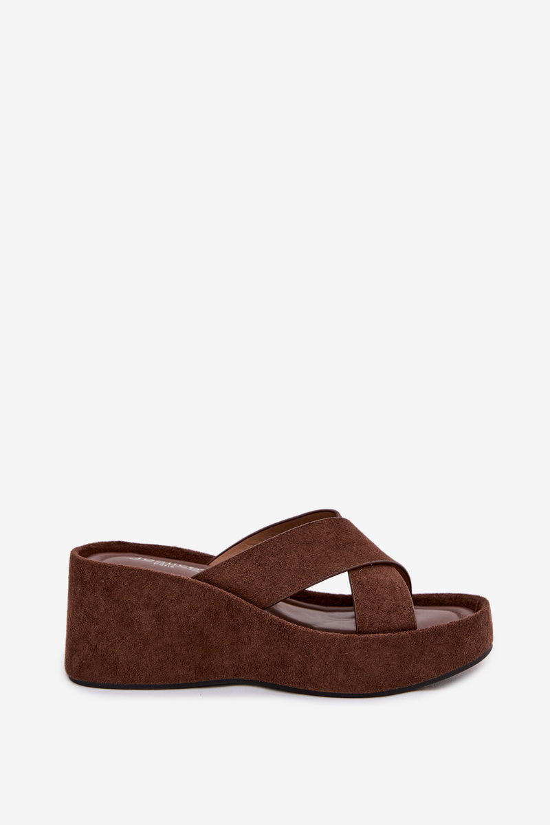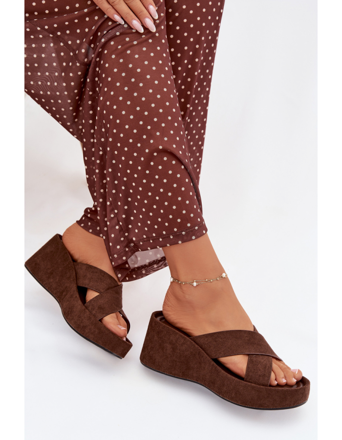 Dámské pantofle Calorine v čokoládovém provedení z eko semiše kombinují elegantní vzhled s pohodlím při každodenním nošení. Klínový podpatek jemně prodlužuje siluetu a zároveň zajišťuje stabilní a komfortní došlap. Tmavě hnědý, čokoládový odstín působí nadčasově a snadno se kombinuje s letními i městskými outfity. Hlavní benefity: Klínový podpatek pro pohodlnou a stabilní chůzi Svršek z eko semiše s jemnou strukturou Elegantní čokoládová barva Pohodlná stélka vhodná pro celodenní nošení Lehká konstrukce ideální pro letní sezónu Využití:Na běžné denní nošení, do města, na procházky, dovolenou i volnočasové aktivity během teplých dnů. Tip:Čokoládové pantofle krásně doplní outfit v béžových, krémových nebo bílých tónech a podtrhnou elegantní letní styl. Složení materiálu: Svršek: eko semiš (syntetický materiál) Vnitřní část / stélka: syntetický materiál Podešev: syntetický materiál