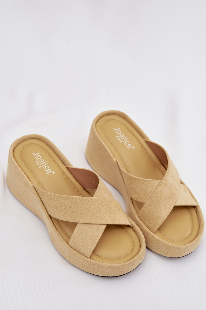 Dámské pantofle Calorine ve žlutém provedení z eko semiše přinášejí svěží barevný akcent a pohodlí pro letní dny. Klínový podpatek jemně zvýrazňuje siluetu a zároveň zajišťuje stabilní a komfortní došlap. Měkký semišový povrch působí příjemně na dotek a výrazná žlutá barva dodá outfitu energii a letní charakter.