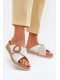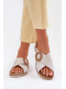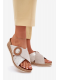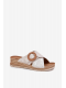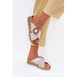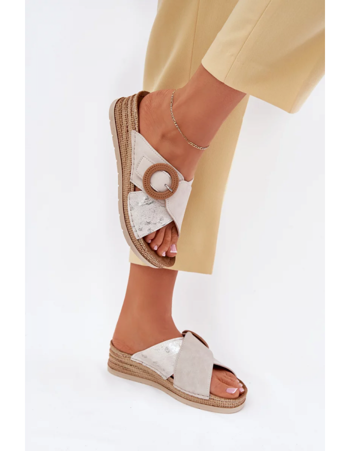 Dámské pantofle Inblu v jemném světle béžovém odstínu jsou pohodlnou a stylovou volbou pro teplé dny. Obuv je usazena na klínu (koturně), který poskytuje stabilní a komfortní došlap, zatímco ozdobná přezka dodává pantoflím elegantní a módní akcent. Vložka z přírodní semišové kůže zvyšuje pohodlí při každodenním nošení a dělá z těchto pantoflí ideální volbu pro letní sezónu.