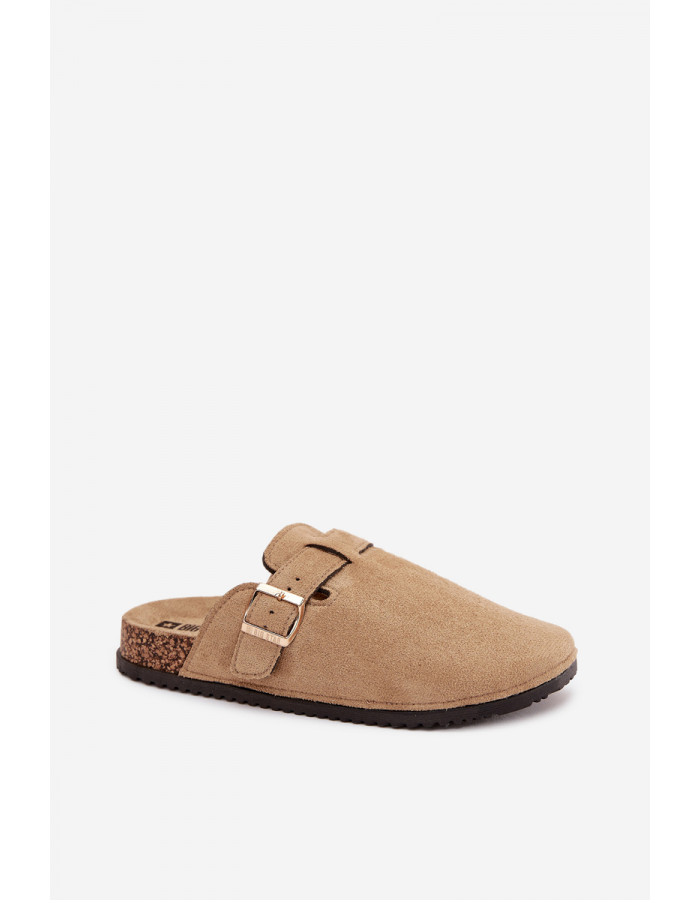 Stylové dámské pantofle Big Star v béžové barvě s korkovou platformou a zlatou přezkou spojují pohodlí s elegantním designem. Lehká konstrukce a stabilní platforma zajišťují komfort při nošení po celý den, zatímco moderní detaily dodávají botám šmrnc.