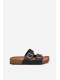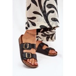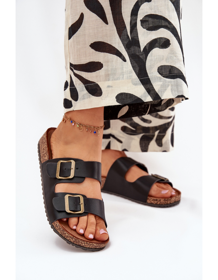 Dámské pantofle na korkové platformě jsou pohodlnou a stylovou volbou pro každodenní nošení v letních dnech. Korková podešev přirozeně tlumí došlap a přispívá k příjemnému pocitu při chůzi. Dvě nastavitelné přezky umožňují snadné přizpůsobení šířky nártu, zatímco černé provedení působí nadčasově a elegantně.