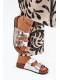 Dámské pantofle na korkové platformě jsou pohodlnou a zároveň výraznou volbou pro letní dny. Korková podešev přirozeně tlumí došlap a podporuje komfort při chůzi. Dvě nastavitelné přezky umožňují snadné přizpůsobení šířky nártu, zatímco stříbrné provedení dodává moderní a elegantní vzhled.