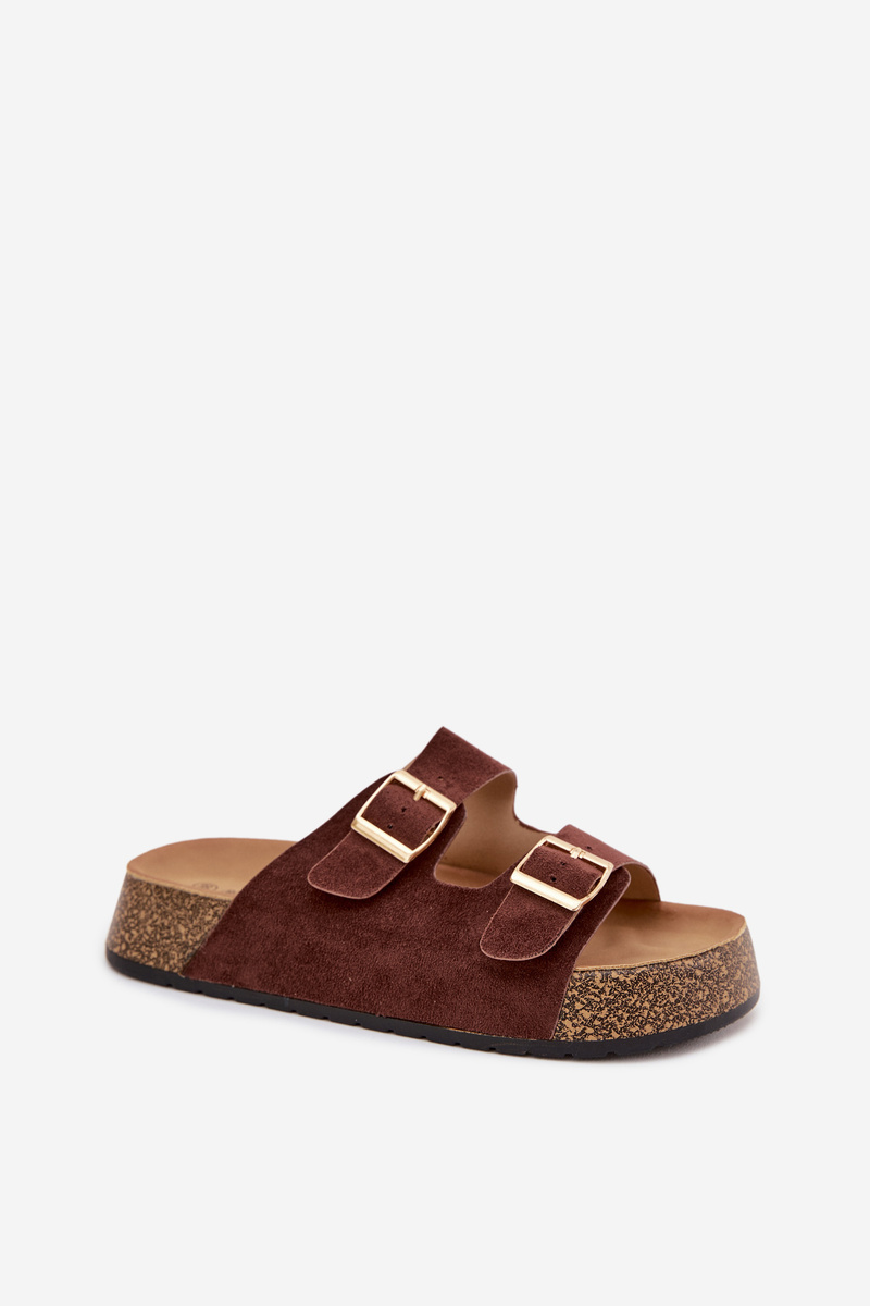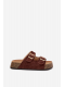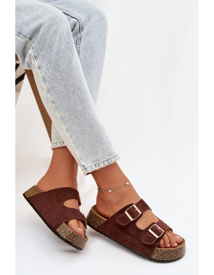 Hnědé pantofle na korkové platformě se skvěle hodí k outfitům v béžových, krémových nebo bílých tónech a podtrhnou přirozený letní vzhled.