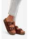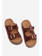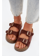 Dámské pantofle Tovessa v hnědém provedení na korkové platformě spojují pohodlí s přirozeným, letním stylem. Korková platforma zajišťuje lehkost a příjemný došlap, zatímco zlaté přezky dodávají obuvi elegantní a luxusní akcent. Hnědá barva působí nadčasově a snadno se kombinuje s městskými i dovolenkovými outfity.