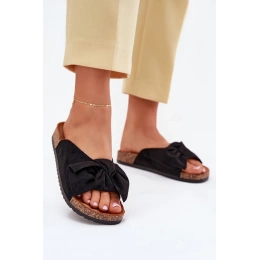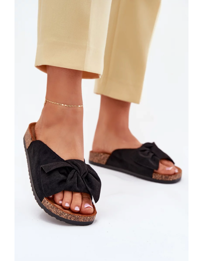 Dámské pantofle na korkové podešvi s ozdobnou mašlí jsou pohodlnou a stylovou volbou pro teplé dny. Korková podešev přirozeně tlumí došlap a podporuje komfort při chůzi, zatímco mašle na nártu dodává obuvi elegantní a ženský vzhled. Černé provedení je univerzální a snadno kombinovatelné s letními outfity.