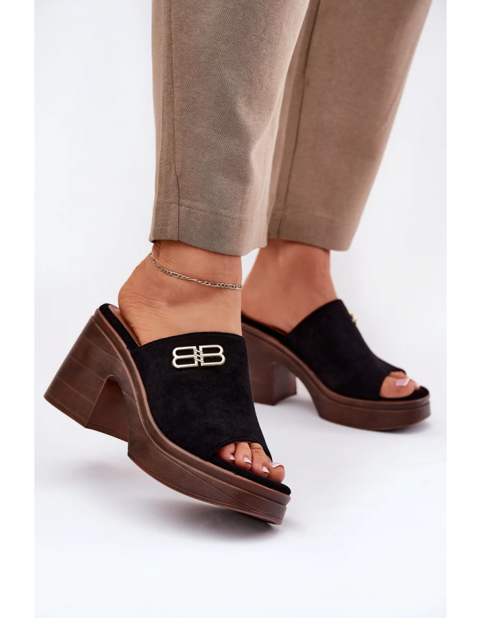 Dámské pantofle Vinceza v elegantním černém provedení s luxusním zlatým detailem spojují pohodlí a styl. Masivní podpatek poskytuje stabilní a komfortní došlap, zatímco zlaté ozdobné prvky dodávají obuvi výrazný a módní vzhled. Černá barva je nadčasová a snadno se kombinuje s různými outfity – od elegantních šatů až po volnočasové kombinace.