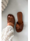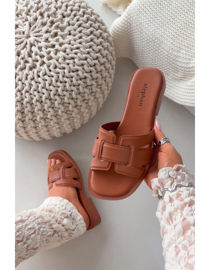 Camel pantofle krásně doplní neutrální outfity – zkombinujte je s bílými šaty, denimovými kousky nebo béžovými kalhotami pro trendy a vyvážený look.