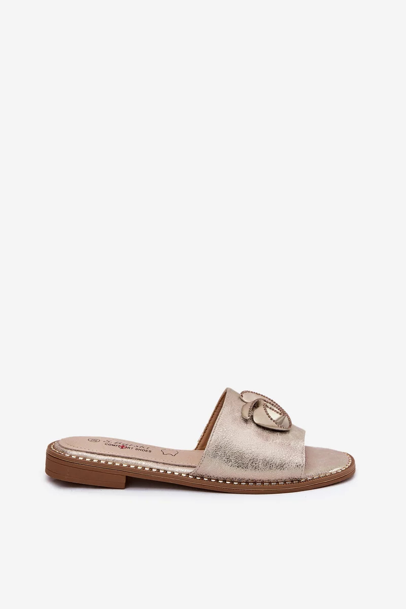Dámské pantofle KV51-007 ve zlatém provedení spojují elegantní vzhled s pohodlím vhodným pro každodenní nošení. Nízký podpatek poskytuje stabilní a komfortní došlap, zatímco ozdobný detail dodává obuvi výrazný stylový akcent. Zlatá barva působí slavnostně i nadčasově a snadno se kombinuje s různými outfity.