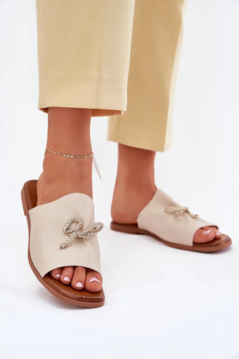 Béžové pantofle s ozdobným vázáním krásně doplní neutrální outfity – zkombinujte je s džínami, sukní nebo šaty pro svěží letní look.